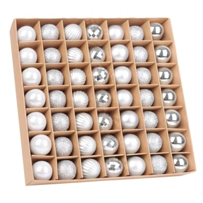VEYLIN Shatterproof Christmas Baubles, 49pcs 3cm Tree Bauble Glitter Christma Ball Xmas Baubles for Decoration (silver)