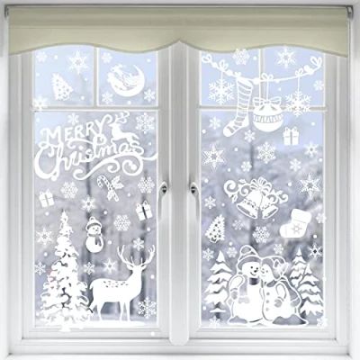 Package: You will get 8 sheets snowflakes window clings (totally 141 pieces), each sheet approx 7.9 x 11inches, it features various of snowflakes, Santa Claus, Merry Christmas letter, snowman, present boxes etc, they can form a beautiful Xmas scene. Simple to Use: Christmas window clings are easy to stick, just a little bit of water to stick, NO GLUE, NO RESIDUE, NO DAMAGE & REUSABLE, water will make them stick better. You will feel very convenient because no need other tools and materials. Creative Ideal: To make design special, we always try to give you more choice and make every detail characteristic. These Xmas window clings are truly perfect decoration to DIY happy festival party decorations. Material: The materials of window sticker decorations are made of high-quality electrostatic membrane PVC material, smooth and sturdy. Eco-friendly. You can stick on where you need,and they are tight, no need to worry about no need to worry about dropping. They can also be removed easily and won't leave a sticky residue. Holiday Decorations: The Xmas window stickers are suitable for Christmas party, holiday indoor decorations. It can be used in home, school, office, and can be stuck to windows, mirrors, and etc, it is a nice gift for your friends and families.