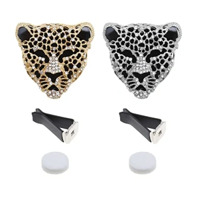 VGOL 2PCS Car Air Vent Clip Bling Rhinestone Leopard Shape Essential Oil Diffuser with Fragrance Cotton Pad Accessories Interior Decor