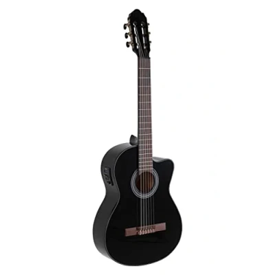 Size: 4/4 with cutaway, top: spruce, back and sides: Okoume Neck: Okoume with carbon reinforcement, body: ABS, fingerboard and bridge: Blackwood Tek 650mm scale, 52mm nut width, nickel silver frets, chrome machine heads Electronics: bridge piezo pickup & 4-band EQ with tuner Hannabach 815HT Silver-Special High Tension Strings Made in Germany High-Gloss Finish Black