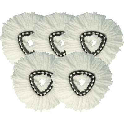 General description vhbw offers high-quality replacement mop heads designed to keep your household floors spotless. These mop refill heads feature flexible microfibres that provide excellent water and dirt absorption, ensuring glossy, streak-free results. They effectively clean floors without leaving any residues behind. Technical specifications Diameter: 34 cm Thickness: 30 mm Weight: 120 g Material: Microfibre Washable at 60°C Color: White Compatibility and accessories Compatible with Vileda EasyWring & Clean Compatible with Vileda EasyWring & Clean Turbo Replacement for Vileda 152623 Installation Attachment of the mop heads to the mop is quick and easy: simply press into place. Usage Reusable and machine-washable up to 60°C. The white fibres thoroughly lift dried dirt and stubborn stains. The red fibres remove impurities and particles from cleaned surfaces. Other information Content of delivery: 5x replacement mop head
