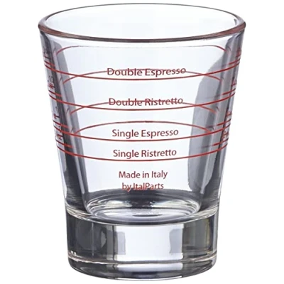 Precision Measurement Tool: Very useful for checking the correct lead time and filling capacity with clearly marked measurement indicators Single Ristretto Marking: Features dedicated measurement line for preparing a single ristretto shot with accurate volume control Single Espresso Marking: Includes clear indication for single espresso measurements to ensure consistent brewing results Double Ristretto Marking: Equipped with measurement guide for double ristretto preparation with precise volume tracking Double Espresso Marking: Contains measurement line for double espresso shots to maintain brewing consistency Transparent Glass Design: Clear glass construction allows easy visibility of coffee volume and extraction quality during brewing Multiple Measurement Options: Provides four different espresso measurement markings for versatile coffee preparation needs, Manufacturer: ITALPARTS