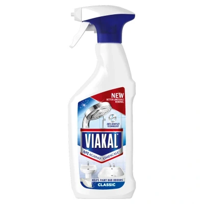 Viakal Limescale Remover 500ml effectively eliminates limescale, soap scum, and water marks with Anti-droplet Technology to prevent reoccurrence—even in hard water areas. Its gentle formula is safe for daily use on most hard surfaces, leaving a long-lasting shine and fresh scent.