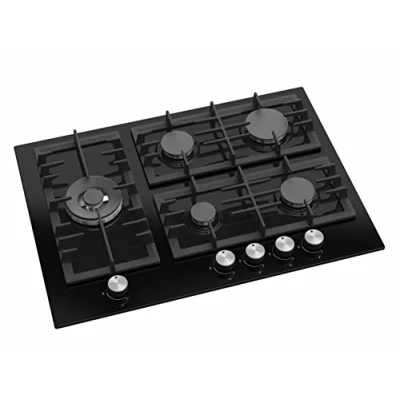 70cm 1 x Dual Wok Burner 5 Burner 10mm Black Safety Glass