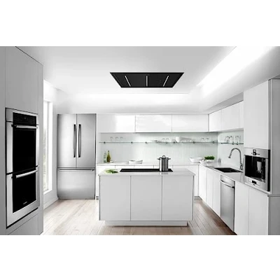 Black Glass Panel & Outer Frame 4 Speeds 3 x LED Lights Remote Control 900mm x 500mm x 218mm 751m³/hr Extraction Rate(EN 61591) Motor Rotates 90° for ease of installation Ducted Installation