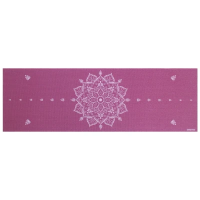 Reach full potential in every area of your yoga practice using the Viavito Asuryama 4mm yoga mat. This generously sized (183x61cm) yoga mat is designed to help you build endurance, flexibility and strength while working the different series of postures. Printed with a beautiful mandala pattern for focus and meditation, the Asuryama lets you take the most out of your yoga sessions. It features a central line and side markers to facilitate proper alignment and enable you to stay centred throughout your practice. To provide impact reduction and enhanced cushioning, the mat is 4mm (0.2') thick and offers a honeycomb textured design delivering a high-grip, anti-slip surface and a stable base for various asanas. Plus, it is lightweight, waterproof and soft to touch and comes with an elastic carry strap for comfortable transportation to and from the studio...