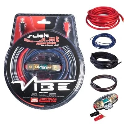 The Vibe Slick 1500 Watt System Wiring Kit is specifically designed to gain maximum output from high power full range systems Works with the majority of amplifiers on the market Item Package Dimension: 26.0cm L x 6.0cm W x 33.5cm H Item Package Weight: 1.2 kg