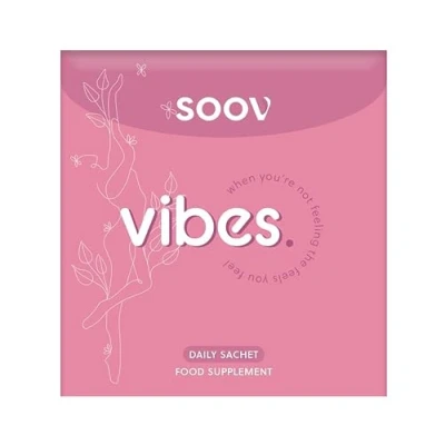 WHEN YOU'RE NOT FEELING THE FEELS: For some, a period can be an emotional rollercoaster, as our hormones lift us up and dump us (so very far) down. We created Vibes, a 7-day sachet supplement, to try and better balance those pesky hormones so you can go on living your best life. A SOOV SUPPLEMENT: soov is a unique range of supplements designed by women to alleviate symptoms associated with your period. Our aim is to look after your well-being and ease some of those less joyful elements of your cycle. WHY CHOOSE G&G?: At G&G we manufacture and sell supplements following a few simple philosophies. We manufacture everything in-house, in our own factory, so we know exactly what goes in to our supplements. As part of this we only use capsules, no tablets. Capsules are much easier to work with, not requiring additional fillers and binders to keep the supplement together. OUR HONEST LABELS: At G&G we pride ourselves on our honest labels. We don't want to hide anything from our customers, so we always declare every ingredient in our products, no matter how small. MANUFACTURED IN THE UK: Manufactured in our own Sussex-based cleanroom, running off of green energy. All our products are made to the highest British manufacturing standards.