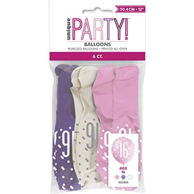 Vibrant 16th Glitz Petal Pink, Spring Lavender & White Latex Balloons (30cm) Perfect for Birthday, Party Decor More 6ct