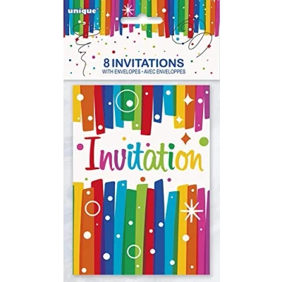 VIBRANT RAINBOW Ribbon BIRTHDAY PARTY INVITATIONS: Perfectly designed for kids' birthdays and special celebrations, make your child's party stand out with these eye-catching, colorful invites. PACK OF 8: This pack comes with 8 beautifully designed 13cm x 10cm invitations, offering great value without compromising on quality. EASY CUSTOMIZATION: Each invitation features a fill-in-the-blank style, allowing you to personalize the details of your child's event and make every guest feel special. FUN & CHEERFUL DESIGN: Our vibrant rainbow invitations will set a joyous tone for your child's birthday party, capturing the excitement of their special day. QUICK & CONVENIENT: These ready-to-use, kids birthday party invitations make it simple for busy parents to plan a fun, memorable celebration, helping to save time and effort., Manufacturer: Unique Party