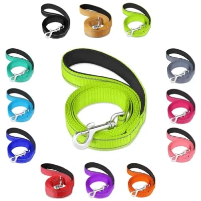 Vibrant Reflective, Padded Handle, Nylon Dog Lead for Walking, Training Leash Dogs (Green, 2cm Wide)