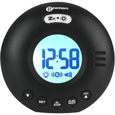 Vibrating Travel Alarm Clock with 75dB Loud Alarm, Flashing Light and Snooze Function the Geemarc WAKE 'N' SHAKE Voyager for Hard to Wake, of Hearing Deaf Battery Operated Black