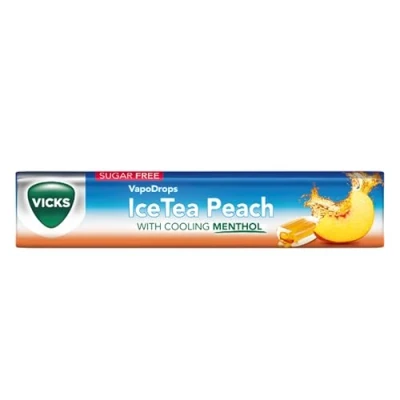 Vicks Vapodrops Ice Tea Peach, Classic Sugar Free Vegan Lozenges, Stick 42g