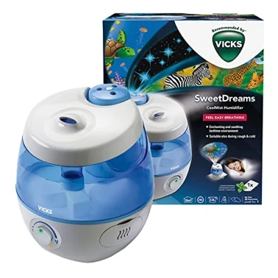 2-in-1 FUNCTION: SweetDreams Cool Mist Humidifier has an integrated image projection system to help soothe children and babies at night. QUIET OPERATION: The Ultrasonic Technology helps easy breathing and getting a good night's sleep during periods of coughs, cold and sinus congestion. NO RISKS OF BURNS: The cool mist technology makes it safe to use around children and babies, suitable for home use including bedrooms and nurseries. VAPOPAD COMPATIBLE: Compatible with VapoPads scented pads with essential oils for extra comfort and soothing vapours for easy breathing - 1 menthol pad included. POWERFUL PERFORMANCE: The 3.8L tank lasts for up to 24 hours in rooms up to 35m2 without the need to refill., Weight: 5.51155655 pounds, Manufacturer: KAZ