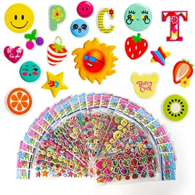 Happy Children's Sticker: Contains 28 or 30 puffy stickers, about 720+ 3D patterns. Can be attached to scrapbooks, diaries, children's hands or faces, walls or cups, rich themes can create hours of fun, and enhance your child's imagination and creativity in a subtle way! Vivid design: With gorgeous colors and vivid cartoon characters, including everything the child likes, such as cars, fruits, stars, dinosaurs, fish, princesses, doraemon, winnie the pooh, p, unicorns. Easy to peel and paste: Made of non-toxic waterproof plastic and are child-friendly. Stickers are easy to peel off from the sheet and can be freely removed from the smooth surface without leaving any traces. Self-adhesive, easy to paste, no need to use glue or tape. Interaction preferred: Teachers and parents use these rich content stickers to get more knowledge and common sense when they play with their children. In this process, it is easier to increase the intimate relationship between the child and the teacher! Perfect rewards and gifts: Teachers and parents can choose stickers to reward efforts and good behavior according to different themes. Stickers are loved by children and can be given as gifts to family, friends or children in festival such as Christmas., Manufacturer: Vicloon