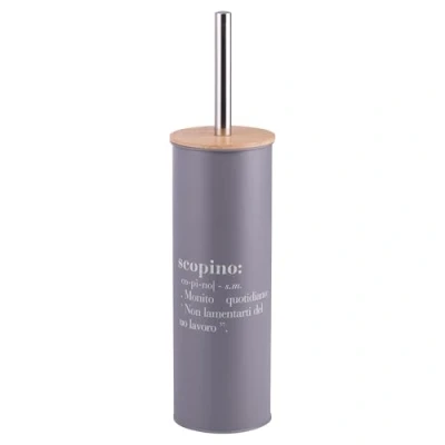 Victionary toilet brush holder made of iron Bamboo lid 18/0 stainless steel toilet brush base and bristles PP plastic inner container for easy cleaning Round base Satin finish Decoration with writing Victionary definition of toilet brush Capacity 1.6 L Dimensions: Ø 9.6 x h. 38 cm. Colour: grey Victionary Iron Toilet Brush Holder Bamboo Lid 18/0 stainless steel brush handle; PP plastic base and bristles; Inner container made of PP plastic for easy cleaning Round Base; Satin Finish; Written Design Victionary definition of toilet brush; capacity 1.6 litres; dimensions: diameter 9.6 x h. 38 cm, Manufacturer: Galileo SpA