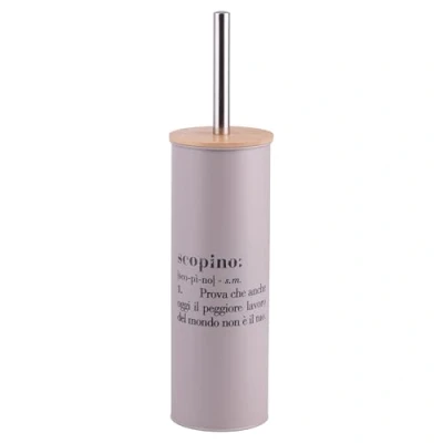 Victionary toilet brush holder made of iron Bamboo lid 18/0 stainless steel toilet brush base and bristles PP plastic inner container for easy cleaning Round base Satin finish Decoration with writing Victionary definition of toilet brush Capacity 1.6 L Dimensions: Ø 9.6 x h. 38 cm. Colour: light grey Victionary Iron Toilet Brush Holder Bamboo Lid 18/0 stainless steel brush handle; PP plastic base and bristles; Inner container made of PP plastic for easy cleaning Round Base; Satin Finish; Written Design Victionary definition of toilet brush; capacity 1.6 litres; dimensions: diameter 9.6 x h. 38 cm, Manufacturer: Galileo SpA