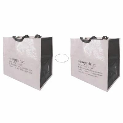 Victionary Shopper Bag In laminated fabric (laminated polypropylene) With ribbon handles "Shopping" decoration Lightweight and space-saving. Large capacity. 45 x 25 x H 45cm (70 with handle) Victionary Shopper Bag, Plastic Fabric (Laminated Polypropylene) With ribbon handles; "Shopping" design Lightweight and space-saving; Large capacity Size: L 45 x 25 x H 45cm (70 with handle)