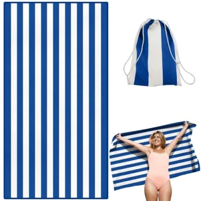 FASHION TWO-SIDE PRINTED & CLASSIC STRIPES:Timeless striped designs suitable for men, women, and children. Our microfiber beach towels are more durable than ordinary towels, featuring quick-dry material with greater strength and toughness. The polymer fibers resist hydrolysis, ensuring the towel stays in shape even after repeated washes. ULTRA ABSORBENT, QUICK DRY & SAND FREE:Designed with a soft, compact and elastic fine-velvet texture that absorbs moisture quickly. Built to last—wash after wash—without deformation or unwanted odors. Just give the towel a shake and the sand easily falls off thanks to the premium sand-free material. RECYCLED, SOFT & SKIN-FRIENDLY:Made with eco-conscious mixed microfiber fabric (85% polyester and 15% nylon). We promote sustainability and help keep the Earth green. The ultra-fine fibers offer superior softness and comfort, making this towel a must-have for family, friends, and travel adventures. EASY TO CLEAN & COLORFAST:Microfiber absorbs dirt between the fibers rather than within them, making the towel easy to clean with water or mild detergent. The advanced dyeing process ensures excellent colorfastness—no fading, even after frequent washing—so you can use it with confidence. LIGHTWEIGHT, PORTABLE & MULTIPURPOSE:Compact and easy to fold, ideal for taking anywhere you go. Perfect as a sports towel, swimming towel, gym towel, yoga or pilates towel, beach towel, travel towel, camping towel or for home use. It’s durable, gentle on surfaces, and does not shed like cotton.