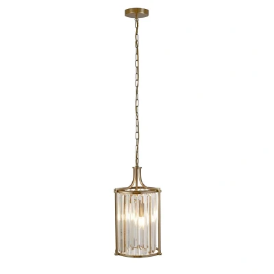 Victoria 2 Light Pendant Antique Brass, Clear Crystal