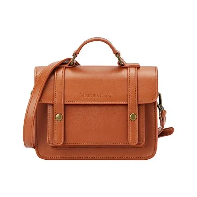 VICTORIA HYDE Women's Vintage Genuine Leather Handbags Shoulder School Satchel Bags Crossbody Bag Messenger Conch Brown