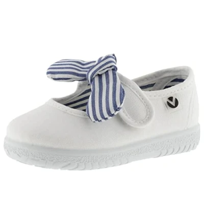 victoria Ojalá Unisex Canvas Mary Janes & Strap Striped Bow 105110 for Kids Blanco 25