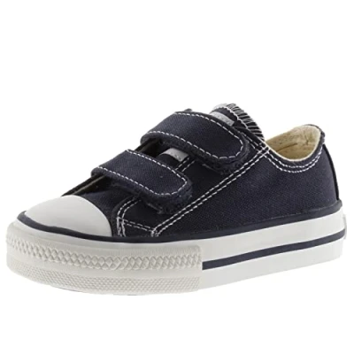 Canvas trainers for kids with hook-and-loop fastening (two straps up to size 28 and three from size 29) for better support and greater independence when putting them on. victoria label on the tongue. Rubber sole with reinforced toe cap for extra strength and durability. You can wash this model in the washing machine, but it is important to follow our washing instructions: maximum temperature: 30 degrees; strong spin or double spin cycle; air dry in a horizontal position, without exposing them to sunlight. With these simple steps, they will be perfect, but if you haven't followed them and there's still a stain, repeat the process and wash them again. For models with a removable insole, we recommend washing it separately by hand.