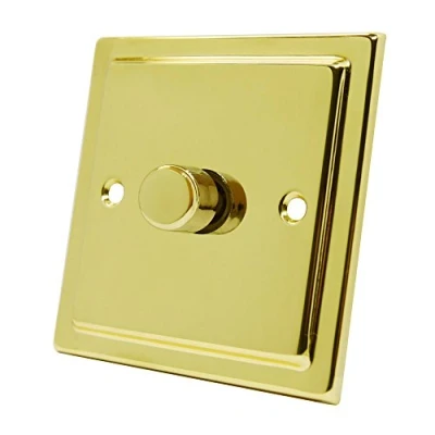 10 Amp Single 1 Gang Light Dimmer Switch Push On/Off with Rotary Dimming 1000W Max. Load: 1000W. Recommended Load: 800W. Leading edge type. Derating required with mains halogen lamps to 650W. Suitable for mains/low voltage lighting in 1 or 2 way circuits Polished Brass Mirror Gold Effect Metal Plate, Weight: 0.0220462262 pounds, Manufacturer: AET