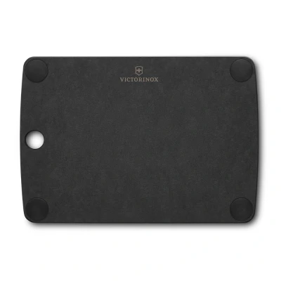 All-in-one chopping board: whether for cakes, meat or vegetables, this chopping board is ideal for chopping all types of food, The juice groove collects excess liquids and prevents smearing on the work surface Comfort: the chopping board has four removable rubber feet at the corners, which ensure a secure stand and a comfortable height, The feet are easy to remove and clean Durable and easy to care for: the chopping board is made from a robust and environmentally friendly paper composite that is heat-resistant up to 175 °C, The material is dishwasher-safe and gentle on knife blades Product details: 254 mm length, 178 mm width, 6 mm height, 318 g weight, black colour, article no. 7.4124.3, All-in-One chopping board, size XS HIGHEST SWISS QUALITY: Victorinox stands for skilled craftsmanship and innovative design. We draw on 140 years’ experience and produce iconic, high-quality knives, watches and travel gear