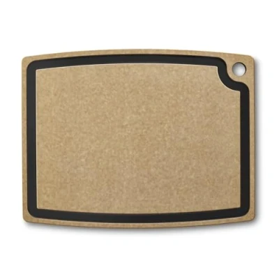 Kitchen KnivesDual-Sided Cutting Board with Generous Juice Groove.With handy juice groove and sleek bi-color design.Crafted from paper composite material that is dishwasher safe and heat resistant up to 175°C/350°F.Ideal for cutting everything from crumbly cake to juicy meat.