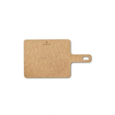 Handy series chopping board: with this chopping board, you can not only cut and chop your ingredients, but also serve them directly on the table Practical and elegant: the chopping board has a practical handle that makes it easier for you to pass and serve food,The handle is ergonomically shaped and has an eyelet for hanging, This means you can store the chopping board in a space-saving way Durable and easy to care for: the chopping board is made from a robust and environmentally friendly paper composite that is heat-resistant up to 175 °C, The material is dishwasher-safe and gentle on knife blades Product details: 229 mm length, 190 mm width, 5 mm height, 272 g weight, light brown colour, article no. 7.4131, Handy series chopping board HIGHEST SWISS QUALITY: Victorinox stands for skilled craftsmanship and innovative design. We draw on 140 years’ experience and produce iconic, high-quality knives, watches and travel gear