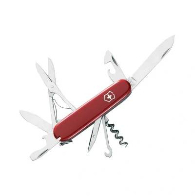 General description This Swiss Army knife features a red handle with the iconic emblem of a cross and shield, symbolizing Swiss craftsmanship and quality. It represents over 130 years of tradition, innovation, and excellence in design. The product is designed to be a reliable companion for both everyday tasks and outdoor adventures, combining functionality and durability. Technical specifications Material: High-quality stainless steel blades and tools Handle: Red with Swiss emblem Number of tools: 14 functions Dimensions: 91mm (3.5in) long Compatibility and accessories Compatible with a wide range of Swiss Army knife models Accessories may include additional blades, scissors, screwdrivers, and other multifunction tools Installation No installation required; ready to use out of the box. Usage Ideal for outdoor activities, camping, hiking, and everyday tasks. Can be used for cutting, screwing, opening bottles, and other common functions. Other information Designed for external use only.