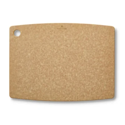 Always at hand: the blade-friendly chopping board from Victorinox is the ideal solution for your kitchen, With its slim, compact design, it fits into any kitchen and is always handy Practical and robust: made of paper composite material, it is dishwasher-safe and heat-resistant up to 175 °C, It combines functionality and durability in one product Elegance and versatility: with its elegant design, it is not only suitable for slicing and chopping, but also for preparing and serving, It is a versatile and stylish kitchen tool Product details: 444 mm length, 330 mm width, 6 mm height, 1225 g weight, light brown colour, article no. 7.4123, chopping board, Kitchen series, size L HIGHEST SWISS QUALITY: Victorinox stands for skilled craftsmanship and innovative design. We draw on 140 years’ experience and produce iconic, high-quality knives, watches and travel gear