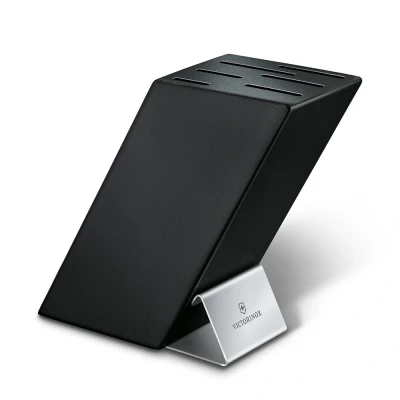 Kitchen KnivesThe geometrical angled shape echoes the form of the six slick synthetic handles it is able to house. The engraved Victorinox logo adds a distinctive detail. Available filled with all six blades or empty. Invest in a little kitchen cool.Ideal for safe blade storage and super fast and easy food preparationCutlery block crafted in robust beech woodCompact design to save counter spaceDimensions: 157 x 100 x 294 mmWeight: 1637g