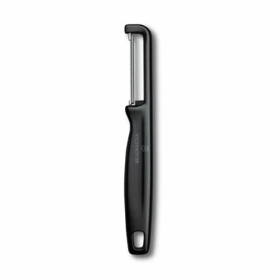 IOTA PEELER: Sometimes, cooking requires a lot of peeling; for optimal peeling soft fruits and vegetables, you can rely on our serrated Iota peeler DURABLE: Swiss-made peeler with a sharp serrated blade with long-lasting edge retention - especially durable and dishwasher safe OPTIMAL HANDLING: The handle of our super lightweight peeler fits optimally in your hand, allowing you to unleash your creativity in the kitchen THE SWISS QUALITY: Victorinox is synonymous with expert craftsmanship and optimal design; we draw on our 130 years of experience to create iconic and high-quality knives, watches, luggage, and perfumes SPECIFICATIONS: Dimensions: 165 mm long × 10 mm wide × 20 mm high; weight: 20 g; handle material: Polypropylene (PP); color: Black; item number: 6.0943.3, Weight: 0.0440924524 pounds, Manufacturer: Victorinox