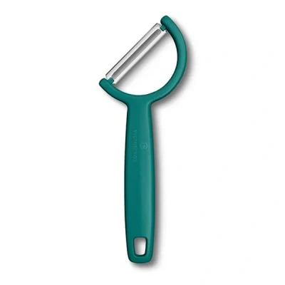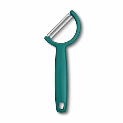 Harts of SturBrighten your kitchen prep and reduce fatigue with the Victorinox Rho Green Peeler, designed to deliver smooth peeling with less strain. Its angled 45° head helps reduce wrist tension, while the sharp straight stainless steel blade ensures a clean peel on tougher produce like apples, courgettes, and potatoes.The green polypropylene handle is ultra-light and ergonomically shaped, providing excellent grip and balance.Dimensions: 16cm (L) x 5.8cm (W) x 1cm (H). Weight: 0.021kg.Dishwasher safe for easy cleaning and covered by a reassuring lifetime manufacturer's guarantee.