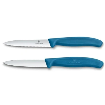 Kitchen KnivesSet Includes:1 Wavy-Edge Paring Knife (10cm blade) — Ideal for slicing through tougher skins and soft interiors1 Straight-Edge Paring Knife (10cm blade) — Perfect for clean, precise cuts and trimmingKey Features:Professional Sharpness: Durable, wear-resistant stainless steel blades for long-lasting performanceErgonomic Handles: Lightweight and shaped for comfort and controlSwiss Made: Crafted with Victorinox’s trusted quality and precisionDishwasher Safe: Easy to clean; hand washing recommended to maintain blade sharpness and handle qualityBest For:Precise slicing, peeling, and prep of fruits and vegetables with varying texturesHome cooks seeking reliable, colorful, and ergonomic knivesA vibrant and practical addition to your kitchen toolkit