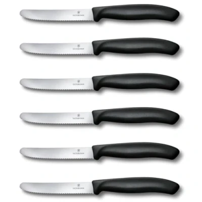 Victorinox Swiss Classic, breakfast knife, bread knife set, 6 piece, sharp blade, serrated edge, 11 cm, plastic handle, stainless steel, black