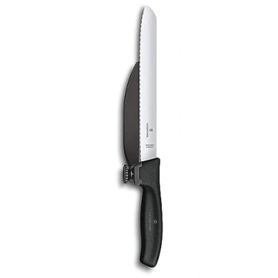 SWISS CLASSIC DUX KNIFE - Wavy-Edge Knife with Adjustable Guide. The tool to create perfectly equal slices. With ergonomic handle, ultrasharp blade and adjustable guide A CUT ABOVE THE REST: Our superior lightweight stainless steel blades provide precision, stability, and accuracy. They are easy to clean, extremely sharp and the prefect gift for everyday use or the culinary professional EASY HANDLING: We've designed a contemporary, robuste, durable, lightweight handle that fits comfortably in the hand. The handle can be sterilized for maximum cleanliness. These exceptional knives are weighted and balanced for easy handling PRODUCT DETAILS: Length 346 mm, Width 52 mm, Height 39 mm, Weight 160 g, Handle material Thermoplastic Elastomers (TPE), Handle color Black, Item 6.8663.21. Swiss Classic Dux Knife HIGHEST SWISS QUALITY: Victorinox stands for skilled craftsmanship and innovative design. We draw on 140 years’ experience and produce iconic, high-quality knives, watches and travel gear