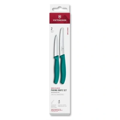 Bring a fresh touch to your kitchen with the Victorinox Swiss Classic 2-Piece Paring Knife Set in lively green. This set includes an 8cm pointed-tip paring knife for precise peeling and trimming, and an 11cm serrated tomato & table knife that glides through soft-skinned fruits and vegetables. The green ergonomic polypropylene handles offer a comfortable grip and add a splash of colour to your culinary tools.Dimensions -Paring Knife: 18.9cm (L) x 2cm (W) x 1.1cm (H); Weight: 0.020kg.Tomato & Table Knife: 22cm (L) x 2.4cm (W) x 1.2cm (H); Weight: 0.028kg.Dishwasher safe, although hand washing is recommended.Swiss-made quality backed by a Victorinox lifetime guarantee.  Knives are not for sale to persons under the age of 18. - all knives and bladed products are delivered by Age Verified Delivery (AVD). The carrier may request proof of age in order to deliver your parcel. If proof of age is not available, or the recipient is underage, the carrier will refuse to deliver.