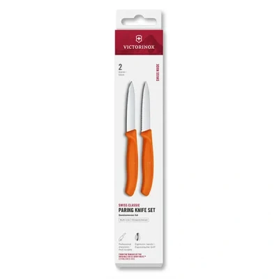 Harts of SturMake food prep vibrant with the Victorinox Swiss Classic Orange Paring Knife Set. Whether slicing, peeling, or finely dicing, the straight and serrated blades offer dependable sharpness, while the ergonomic orange handles brighten up every kitchen task.Dimensions: 18.9cm (L) x 2cm (W) x 1.1cm (H). Blade length: 8cm. Weight: 0.020kg per knife. Dishwasher safe, though hand washing is recommended.Supplied with a Victorinox lifetime guarantee.  Knives are not for sale to persons under the age of 18. - all knives and bladed products are delivered by Age Verified Delivery (AVD). The carrier may request proof of age in order to deliver your parcel. If proof of age is not available, or the recipient is underage, the carrier will refuse to deliver.