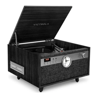 The Victrola Century 6-in-1 Music Centre's got everything you need for a proper trip down memory lane. It's got a turntable, CD player, Bluetooth streaming, tape deck, FM radio and Aux In port - just play however you want. With its vinyl stream technology, you can wirelessly stream your records with any Bluetooth speaker, which is a nice modern touch. And if there's a track missing from your collection, no problem - just stream it straight from your phone with Bluetooth.Good to know- Play all the various speeds in your collection - 33 1⁄3, 45 and 78 RPM- With the built-in stereo speakers, you can start listening to your precious vinyl right away- Its Aux-in jack lets you plug in an MP3 or CD player and enjoy your old favourites- The wooden finish, fabric speaker grill and the analogue clock give it a classic retro look