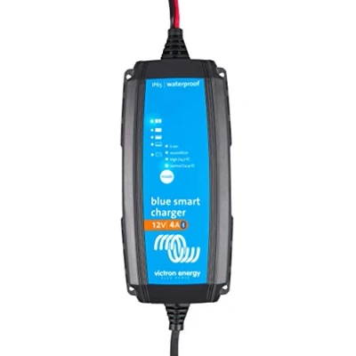 Victron Energy Blue Smart Battery Charger: The new professional car battery charger with wireless solution to monitor voltage and current, to change settings and to update the charger when new features become available Built-in Bluetooth: This battery charger is equipped with built-in Bluetooth. Easily adjust charging settings and monitor real-time and historic data via the Victron Connect app. Switch to power supply mode to power DC loads without a battery High efficiency and protected against overheating: With up to 94% efficiency, this trickle charger generate up to four times less heat when compared to the industry standard Plug and Play: Comes with easy to use alligator clips. Or, leave the M8 eyelets permanently connected to your battery and simply connect/disconnect the float charger using the included quick connectors. For all kind of devices and vehicles: Victron Energy Blue Smart IP65 Charger is splash-resistant and can be used on devices in your workshop and on motor or marine vehicles, such as (classic) cars, boats, yachts and motorbikes