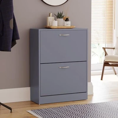 Vida Designs 2 Drawer Shoe Cabinet Cupboard Storage Pull Down Organisation Organiser Wooden Furniture Unit (Grey)