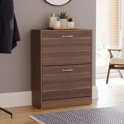 Vida Designs 2 Drawer Shoe Cabinet Cupboard Storage Pull Down Organisation Organiser Wooden Furniture Unit (Walnut)