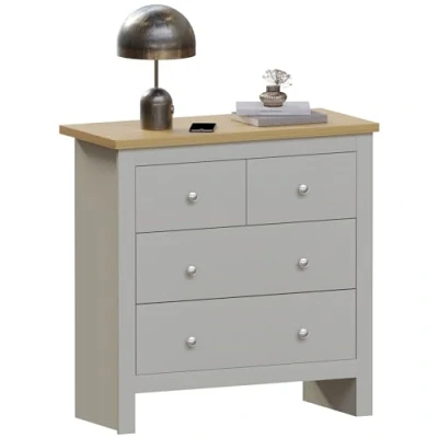 Vida Designs Arlington 2+2 Chest of Drawers Cabinet Storage Modern Bedroom Furniture (Grey)