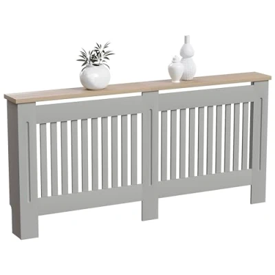 Vida Designs Arlington Radiator Cover Grey Modern Painted MDF Cabinet, Slats, Grill, Wood Top Shelf, Extra Large (H: 83.3 / W: 172 D: 19 cm)