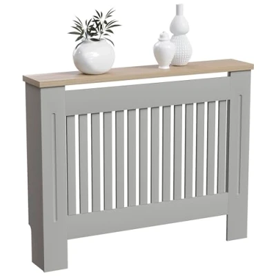 Vida Designs Arlington Radiator Cover Grey Modern Painted MDF Cabinet, Slats, Grill, Wood Top Shelf, Medium