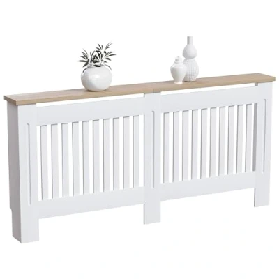 Vida Designs Arlington Radiator Cover White Modern Painted MDF Cabinet, Slats, Grill, Wood Top Shelf, Extra Large (H: 83.3 / W: 172 D: 19 cm)