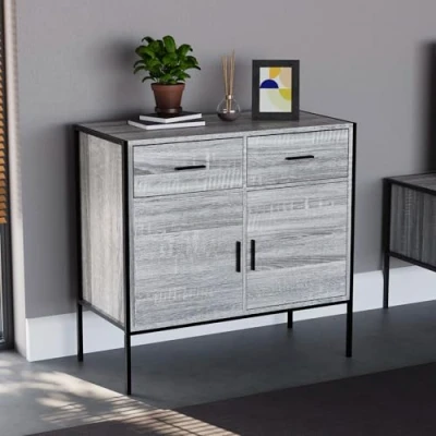 The sideboard can be used for a range of different tasks such as a space for you to store items or even a to put decoration pieces on to give your house a whole new stylish look. Our sideboard is made from high quality materials such as PB melamine & Metal , meaning it will stay solid and not be at risk of breaking easily whilst you have got the product in use. All our products come with easy to follow assembly instructions, meaning you can have the sideboard ready in no time. The sideboard is easy to clean, simply wipe down with a dry cloth and have the product looking as good as new throughout its time within your home. The 2 door 2 drawer sideboard has 2 different colours for you to choose from, meaning you can pick the one that you think matches best with the décor of your home. Please be advised that the product arrives flat packed and will require self assembly once delivered.